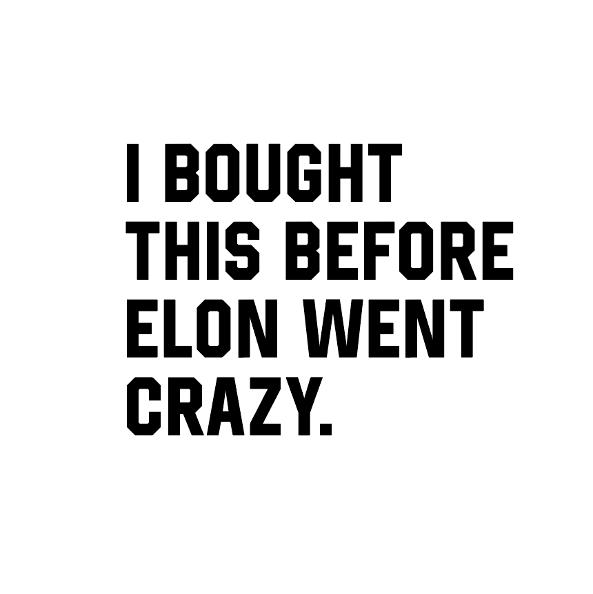 Siirtokalvotarra "I BOUGHT THIS BEFORE ELON WENT CRAZY." tekstillä